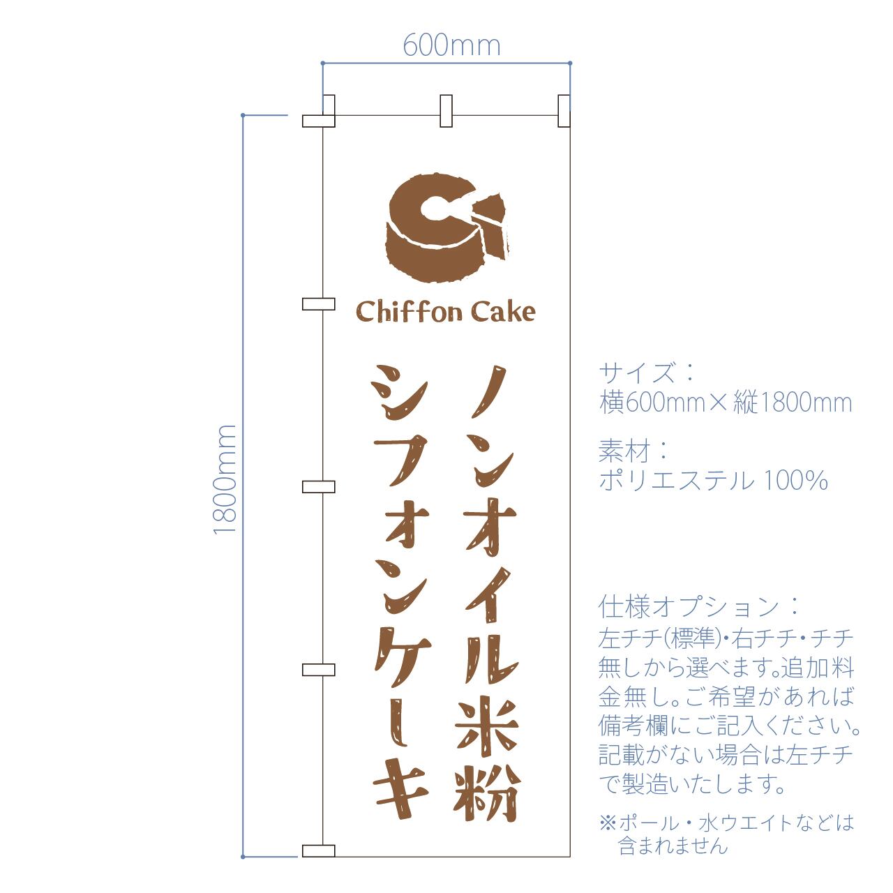 ノンオイル米粉シフォンケーキ ケーキ 洋菓子 のぼり旗 おしゃれ のぼり オリジナルデザイン 1枚から購入可能