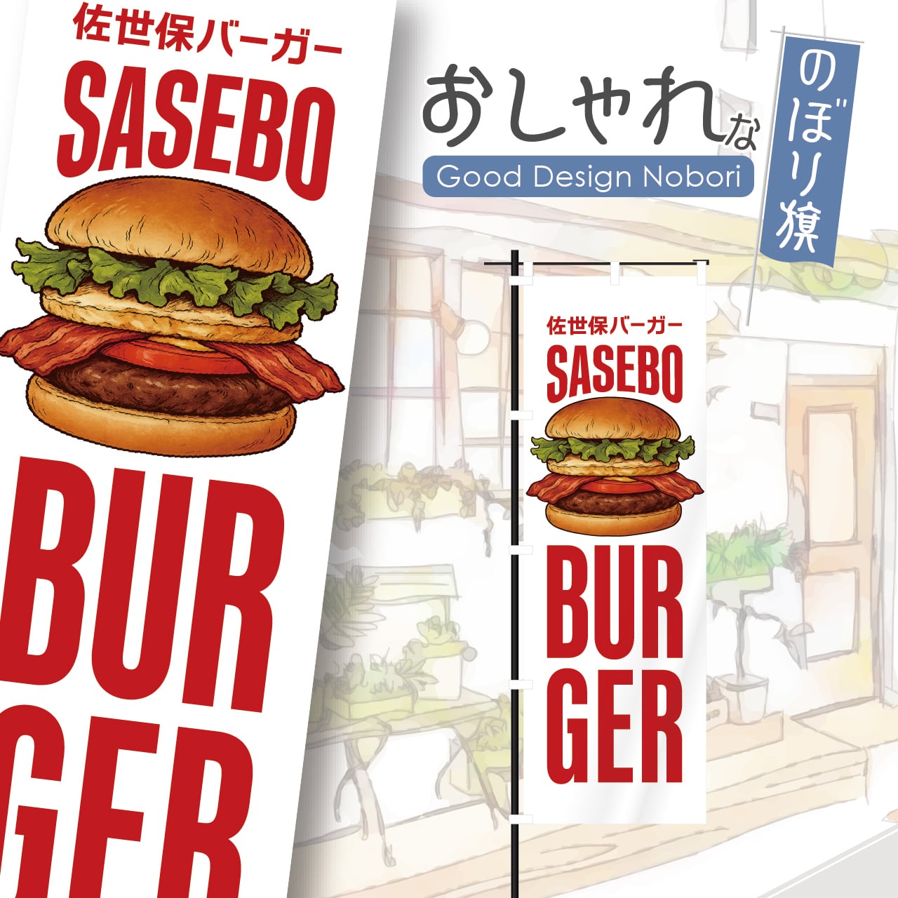 佐世保バーガー バーガー ハンバーガー キッチンカー ファストフード のぼり旗 おしゃれ のぼり オリジナルデザイン 1枚から購入可能