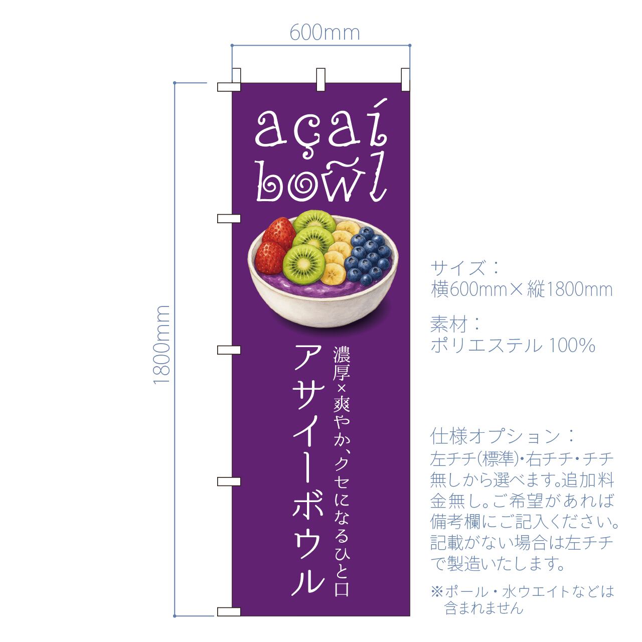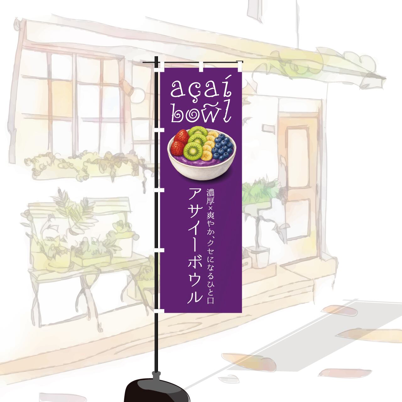 アサイー acai アサイーボウル スーパーフード ミラクルフルーツ 奇跡のフルーツ のぼり旗 おしゃれ のぼり オリジナルデザイン 1枚から購入可能