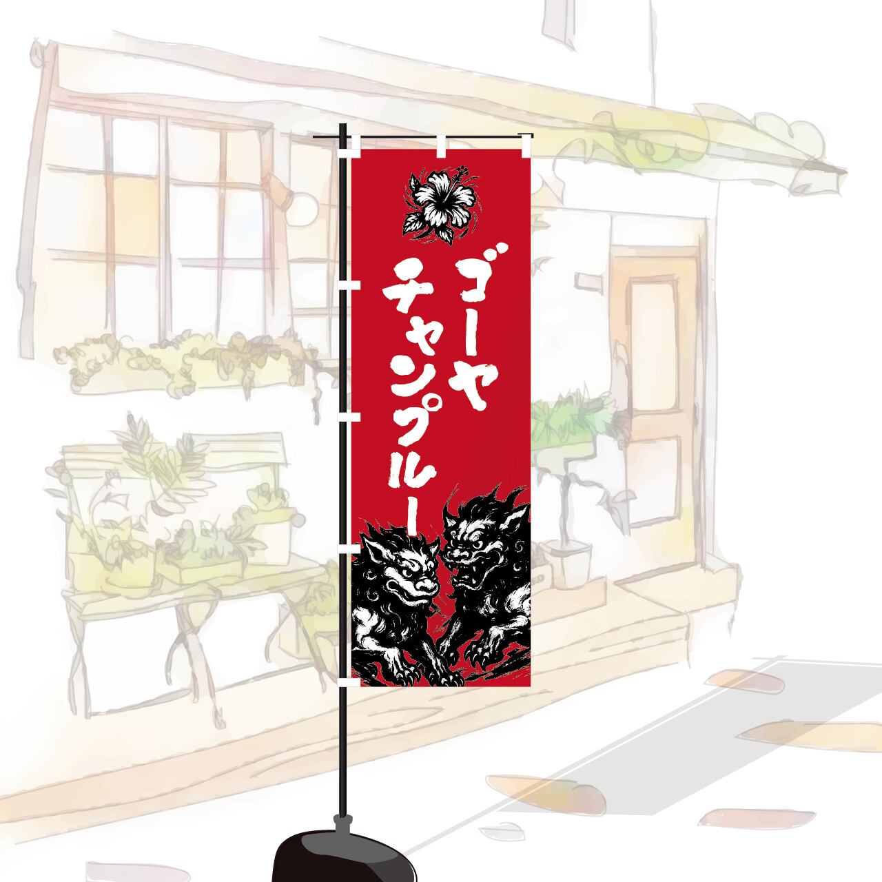 ゴーヤチャンプルー 沖縄料理 沖縄そば ソーキそば のぼり旗 おしゃれ のぼり オリジナルデザイン 1枚から購入可能
