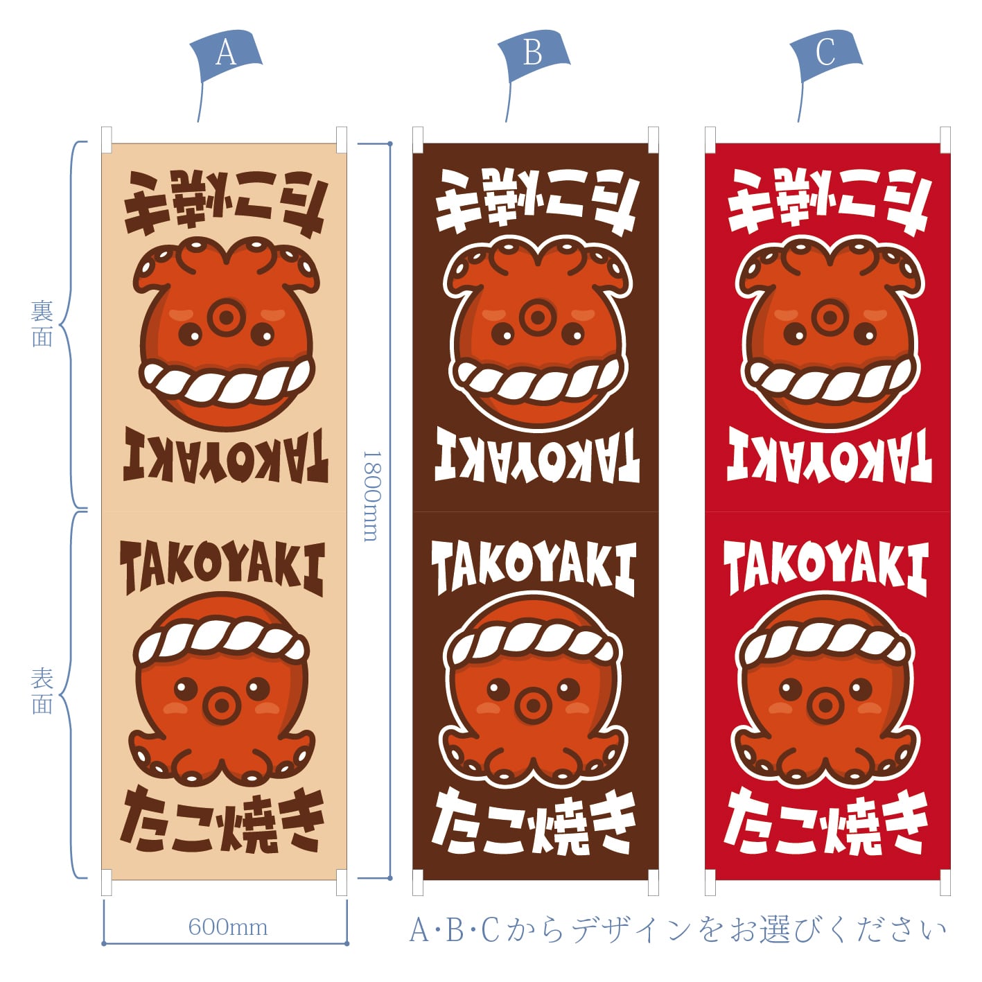 のぼりのデザインをA・B・Cの中からお選びください。