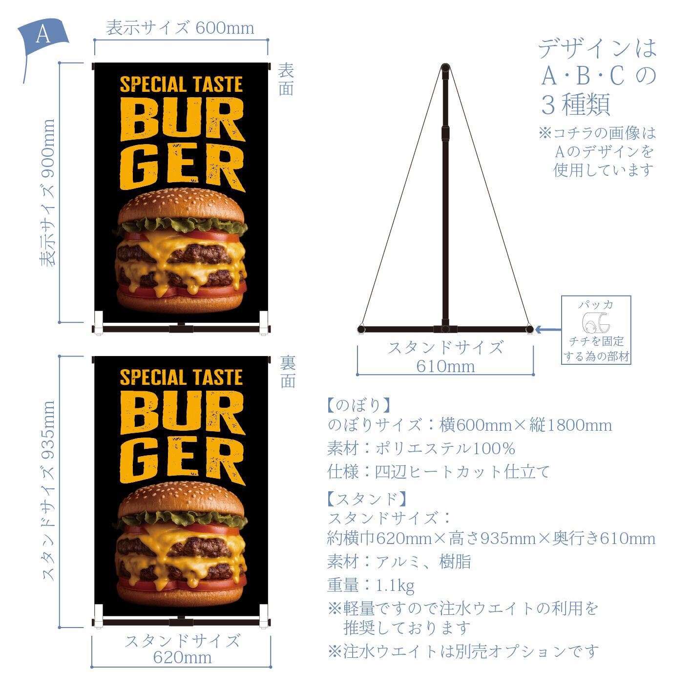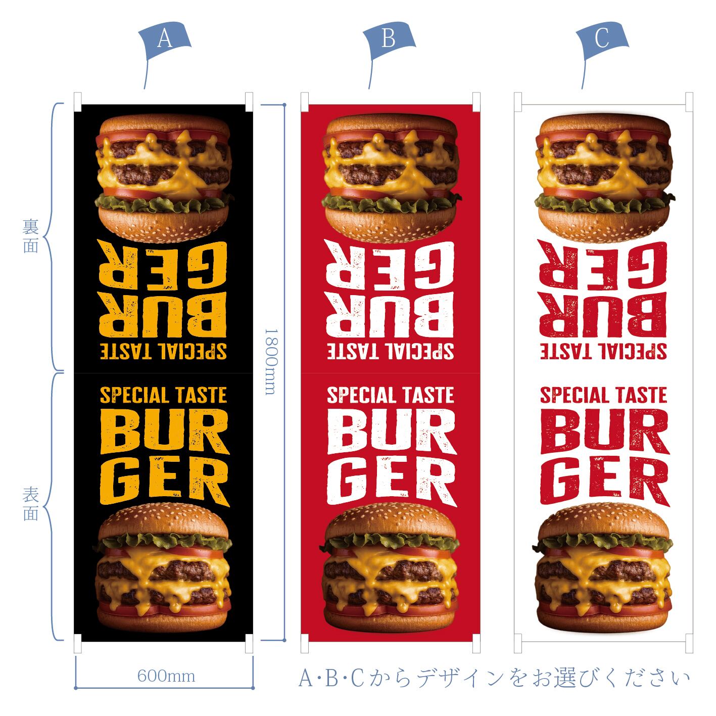 のぼりのデザインをA・B・Cの中からお選びください。