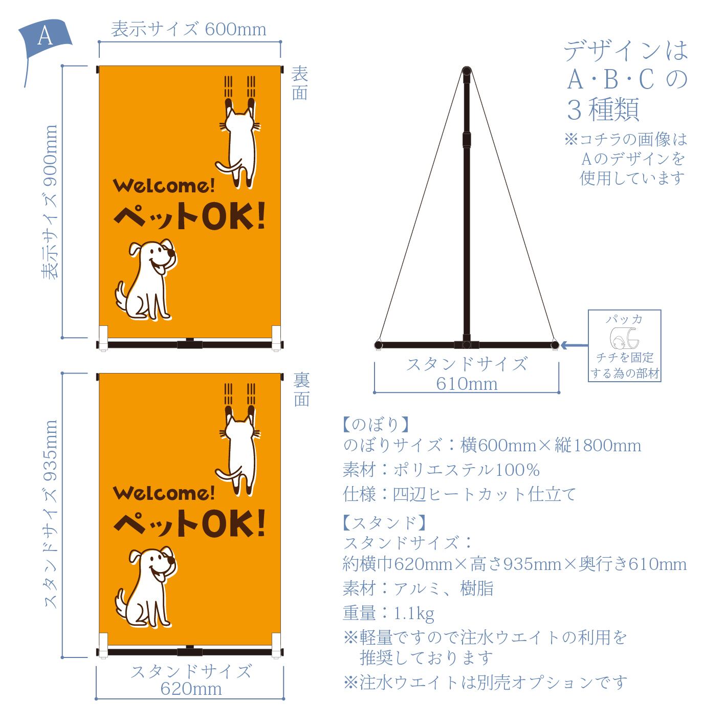 のぼりのデザインをA・B・Cの中からお選びください。