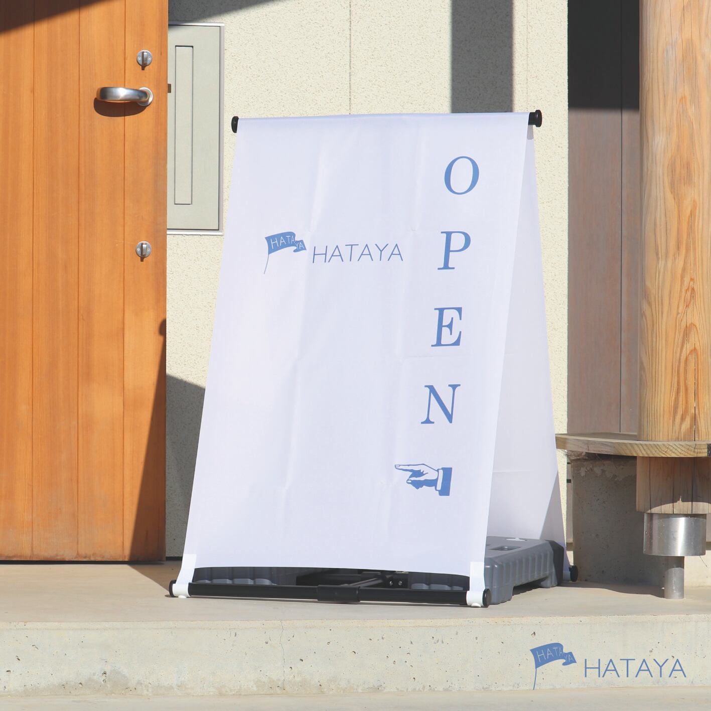 のぼり生地を使った看板は、かろやかな印象があり、屋内 屋外どんな場所においてもおしゃれ!