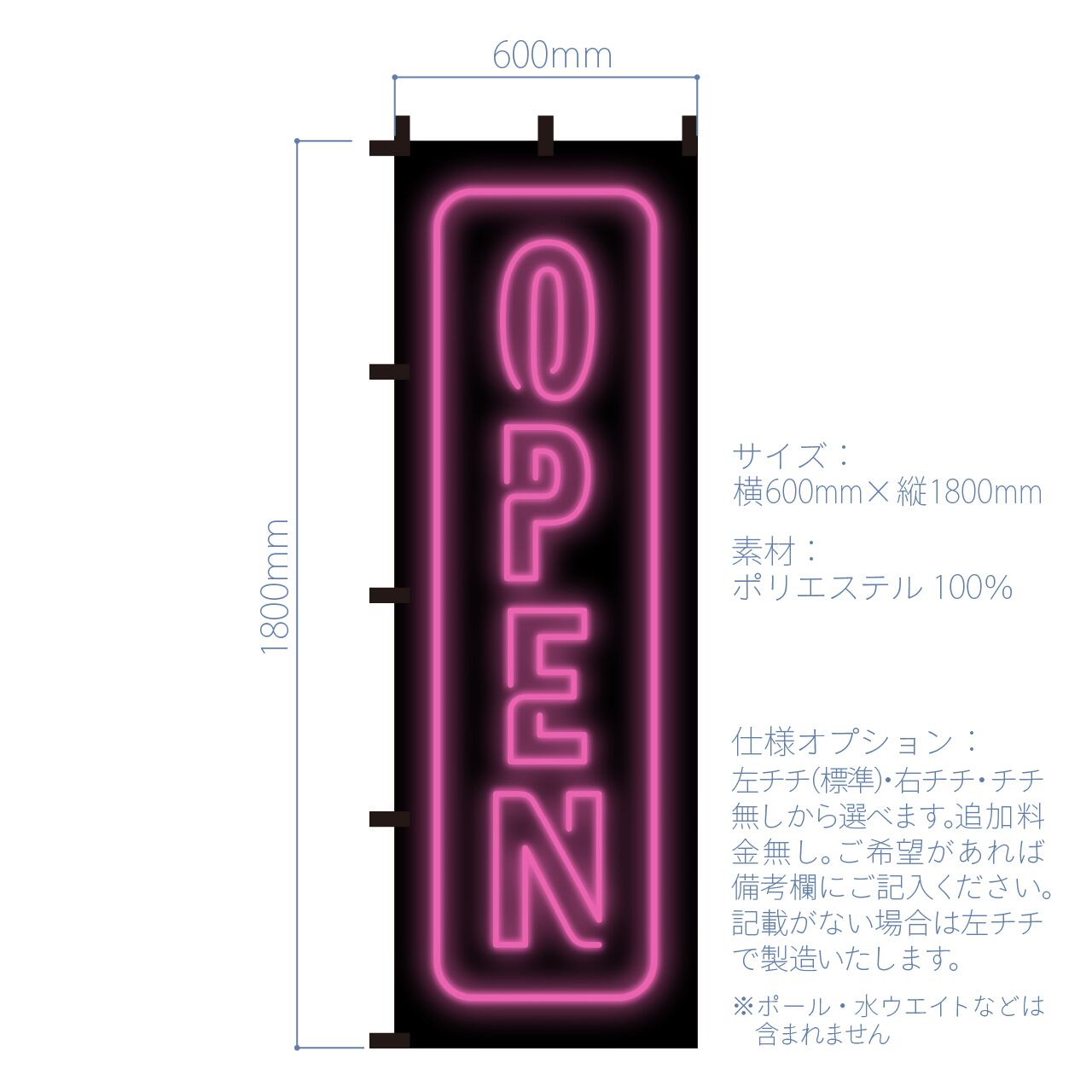 【蛍光色:ピンク】OPEN オープン 営業中 のぼり旗 おしゃれ のぼり オリジナルデザイン 1枚から購入可能