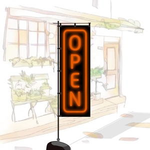【蛍光色:オレンジ】OPEN オープン 営業中 のぼり旗 おしゃれ のぼり オリジナルデザイン 1枚から購入可能