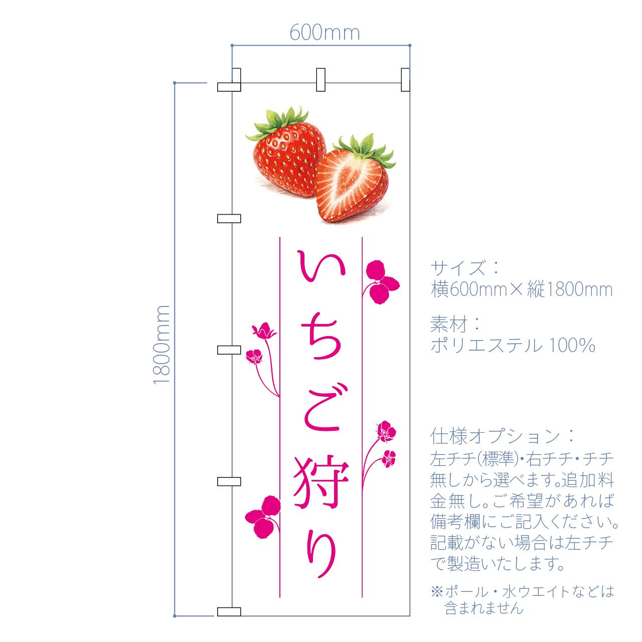 いちご狩り イチゴ狩り 苺狩り のぼり旗 おしゃれ のぼり オリジナルデザイン 1枚から購入可能