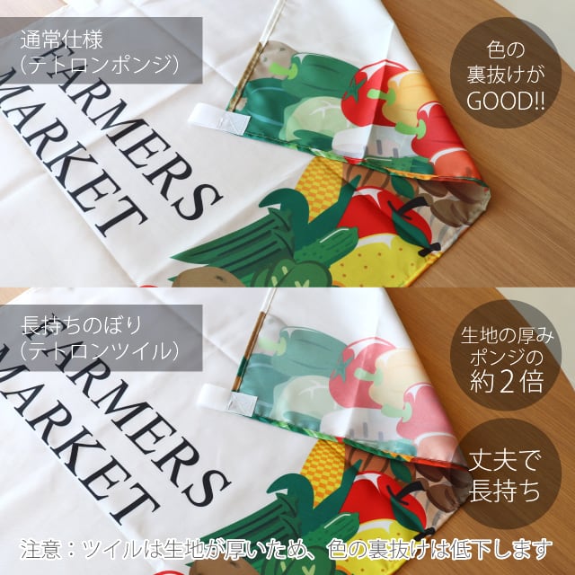 ・厚手のテトロンツイル生地を使用し、四辺三巻縫製を施した高耐久タイプ