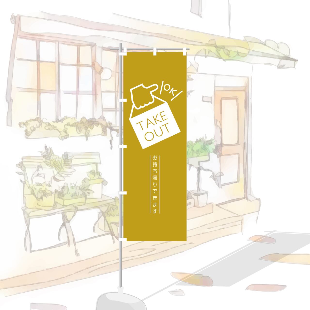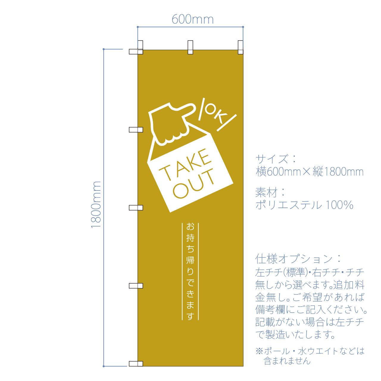 お持ち帰り テイクアウト TAKEOUT のぼり旗 おしゃれ のぼり オリジナルデザイン 1枚から購入可能