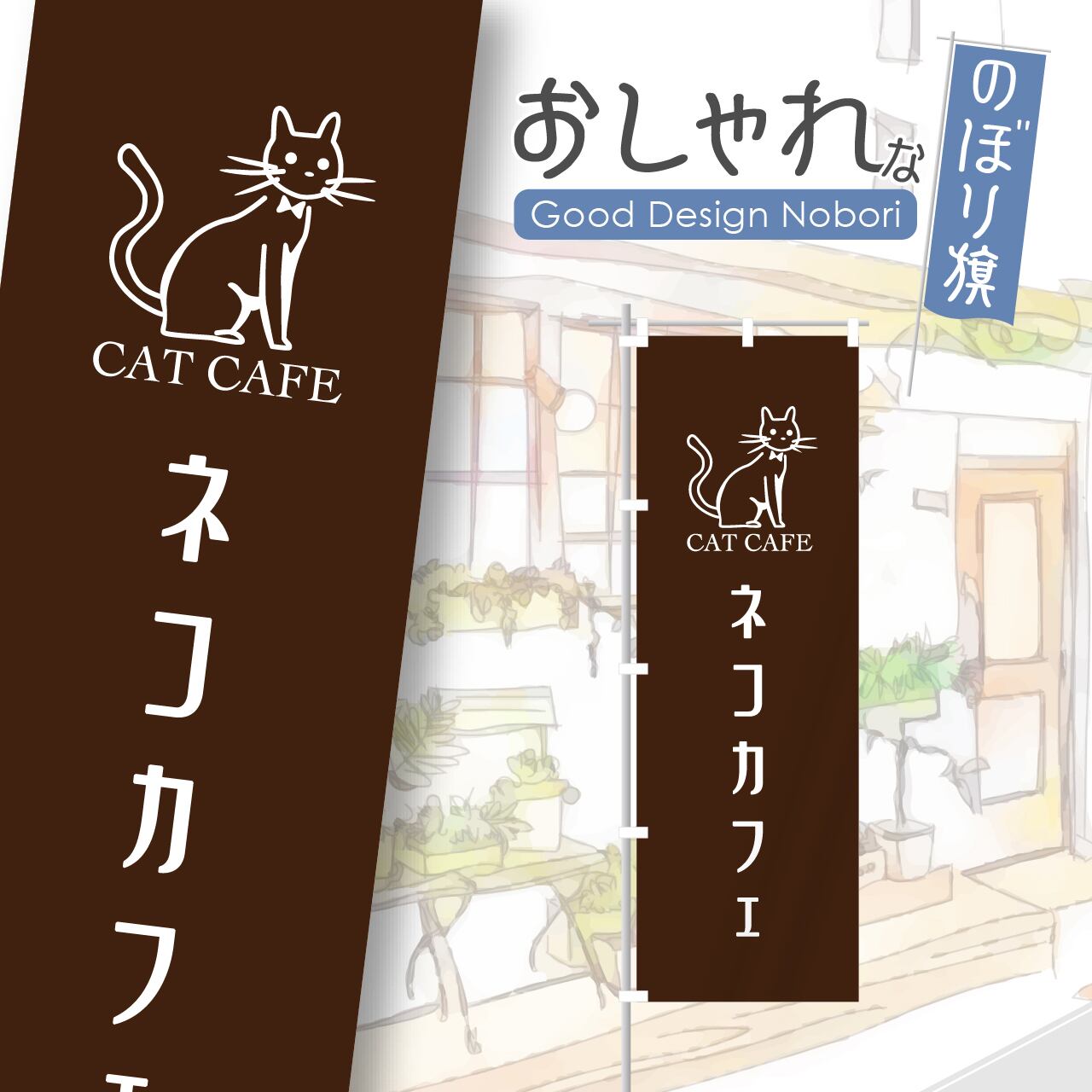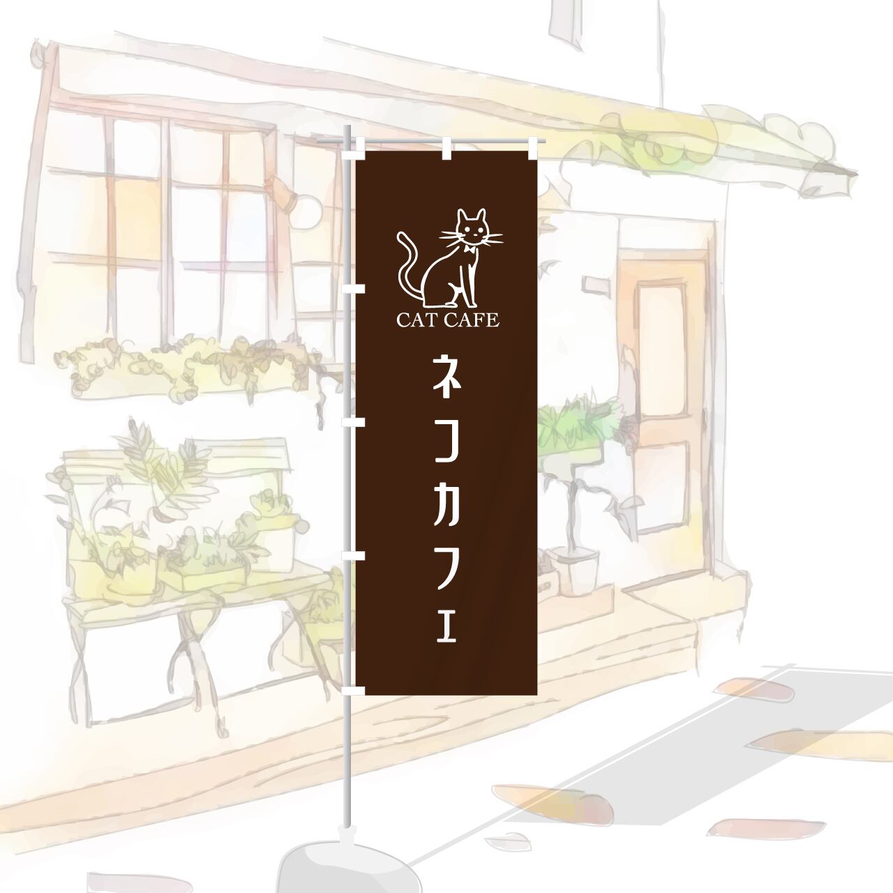 猫カフェ ペットカフェ 猫 ペット のぼり旗 おしゃれ のぼり オリジナルデザイン 1枚から購入可能