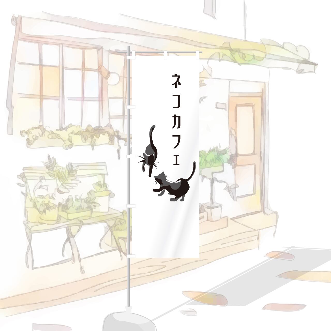猫カフェ ペットカフェ 猫 ペット のぼり旗 おしゃれ のぼり オリジナルデザイン 1枚から購入可能