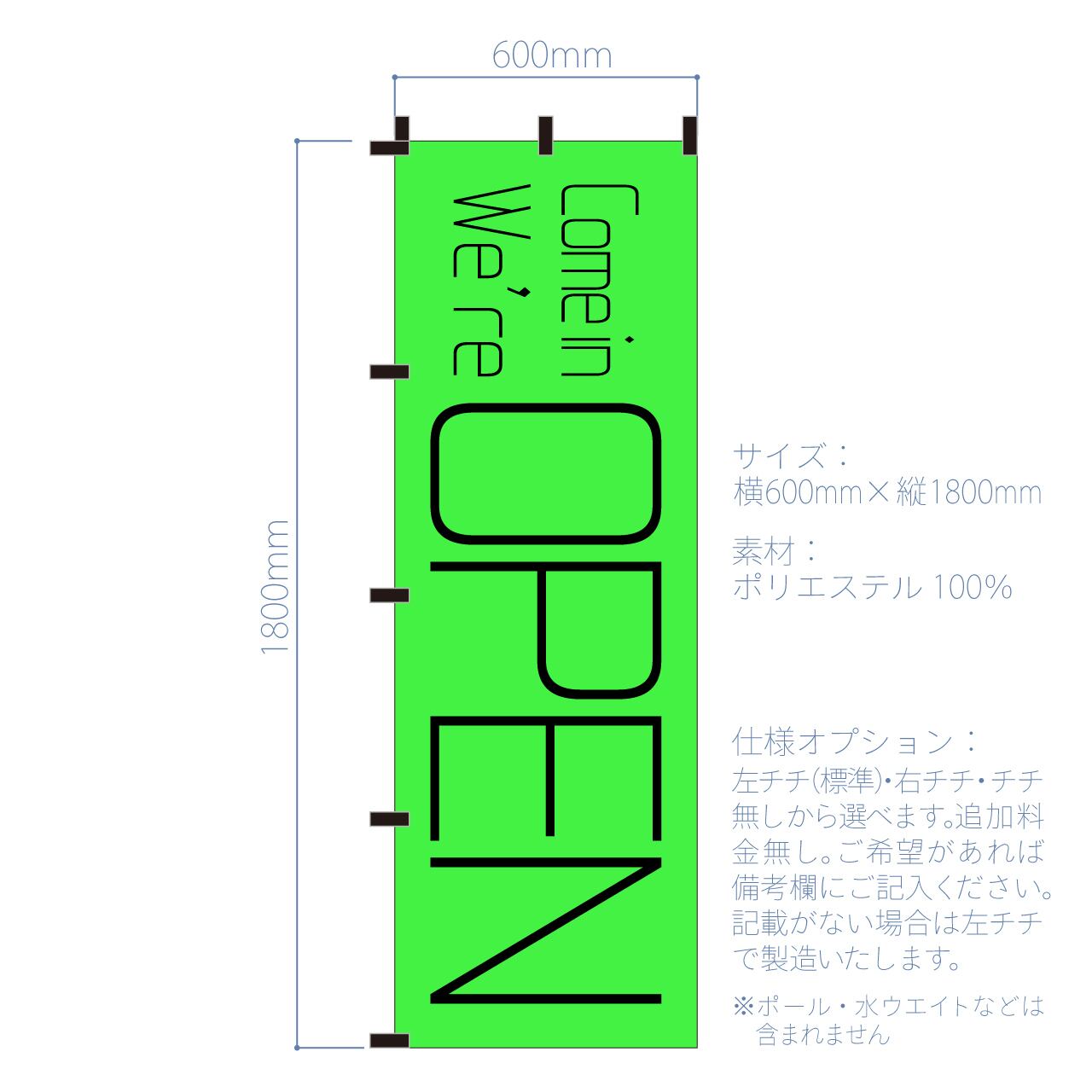 【蛍光色:グリーン】OPEN オープン 営業中 のぼり旗 おしゃれ のぼり オリジナルデザイン 1枚から購入可能