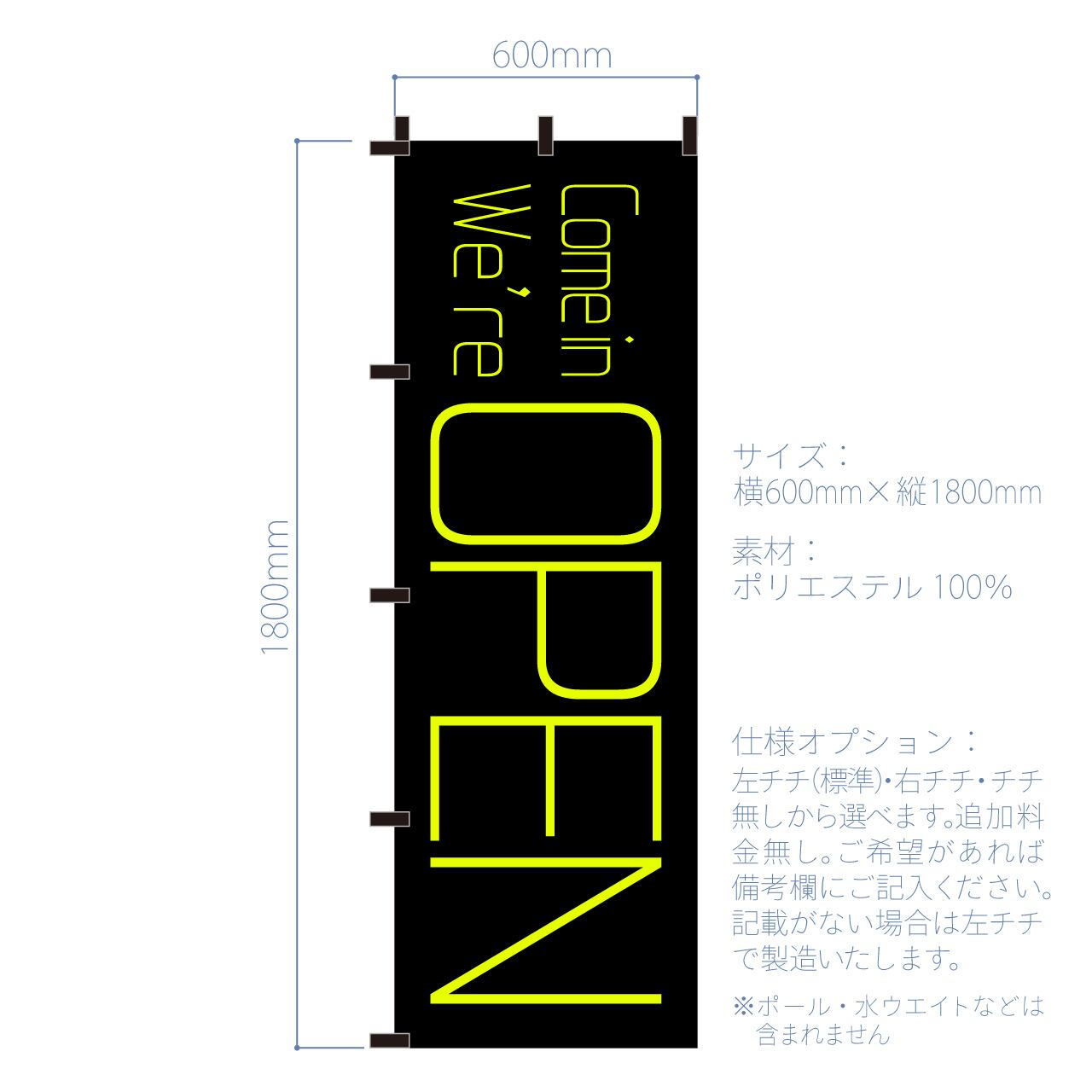 【蛍光色:イエロー】OPEN オープン 営業中 のぼり旗 おしゃれ のぼり オリジナルデザイン 1枚から購入可能