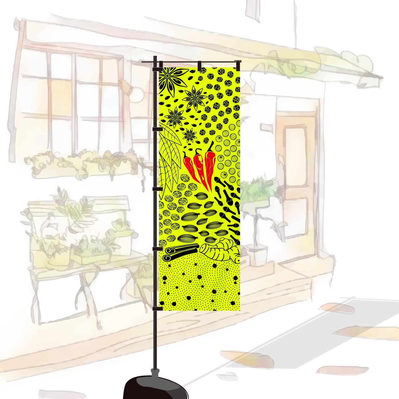 【蛍光色:イエロー】カレー スパイスカレー 香辛料 飲食 営業中 のぼり旗 おしゃれ のぼり オリジナルデザイン 1枚から購入可能