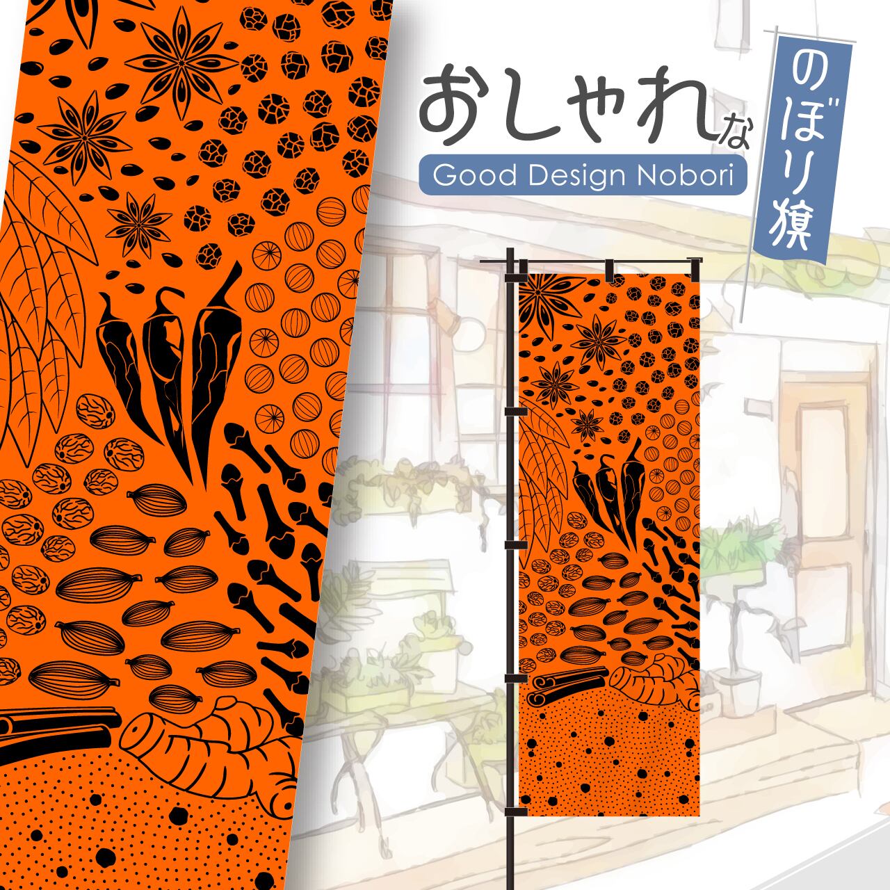 【蛍光色:オレンジ】カレー スパイスカレー 香辛料 飲食 営業中 のぼり旗 おしゃれ のぼり オリジナルデザイン 1枚から購入可能