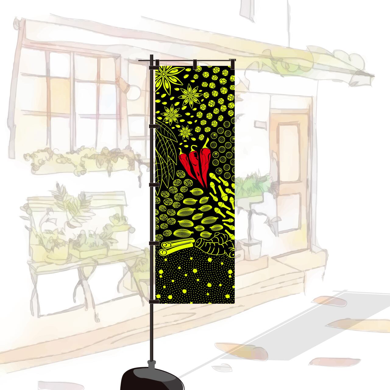 【蛍光色:イエロー】カレー スパイスカレー 香辛料 飲食 営業中 のぼり旗 おしゃれ のぼり オリジナルデザイン 1枚から購入可能
