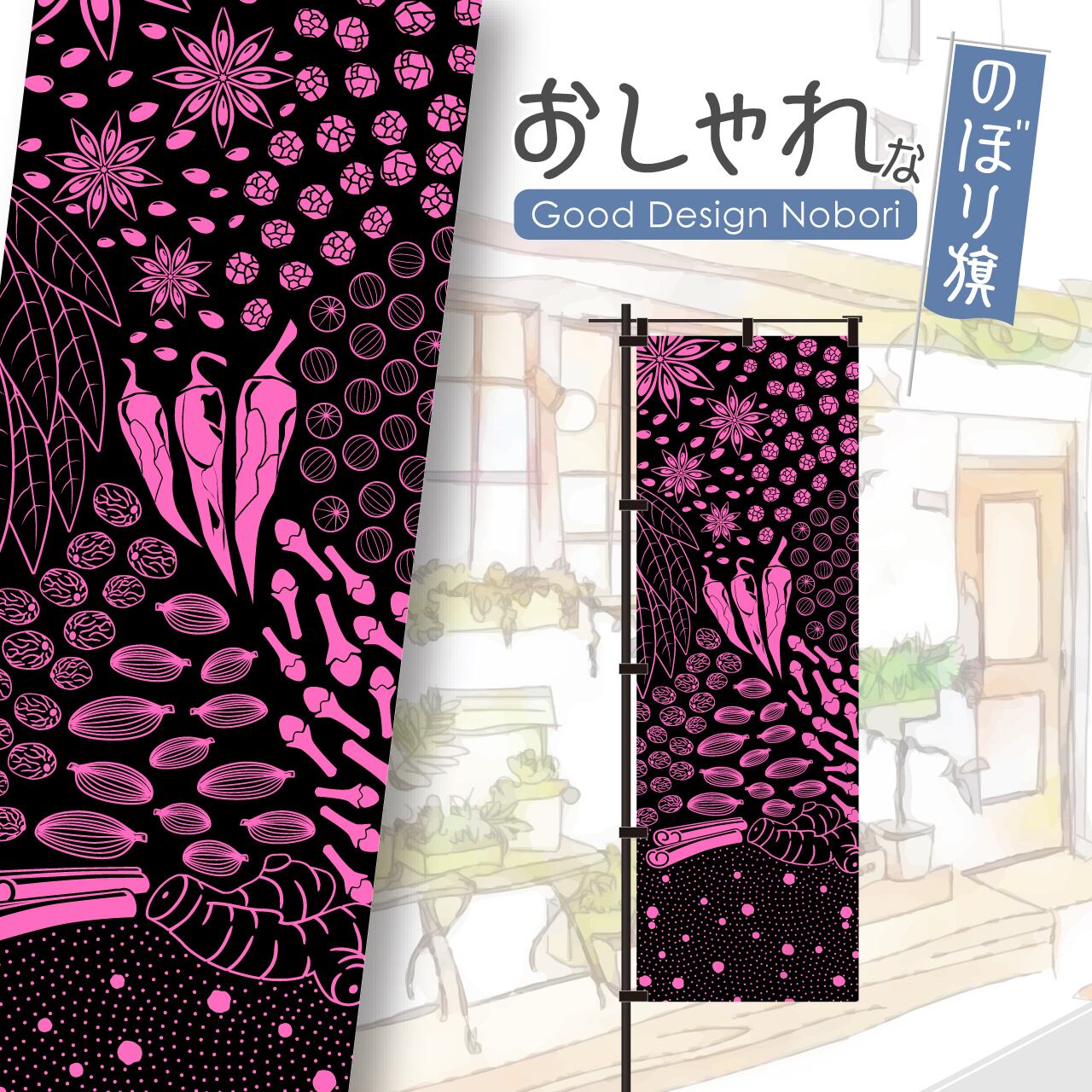 【蛍光色:ピンク】カレー スパイスカレー 香辛料 飲食 営業中 のぼり旗 おしゃれ のぼり オリジナルデザイン 1枚から購入可能