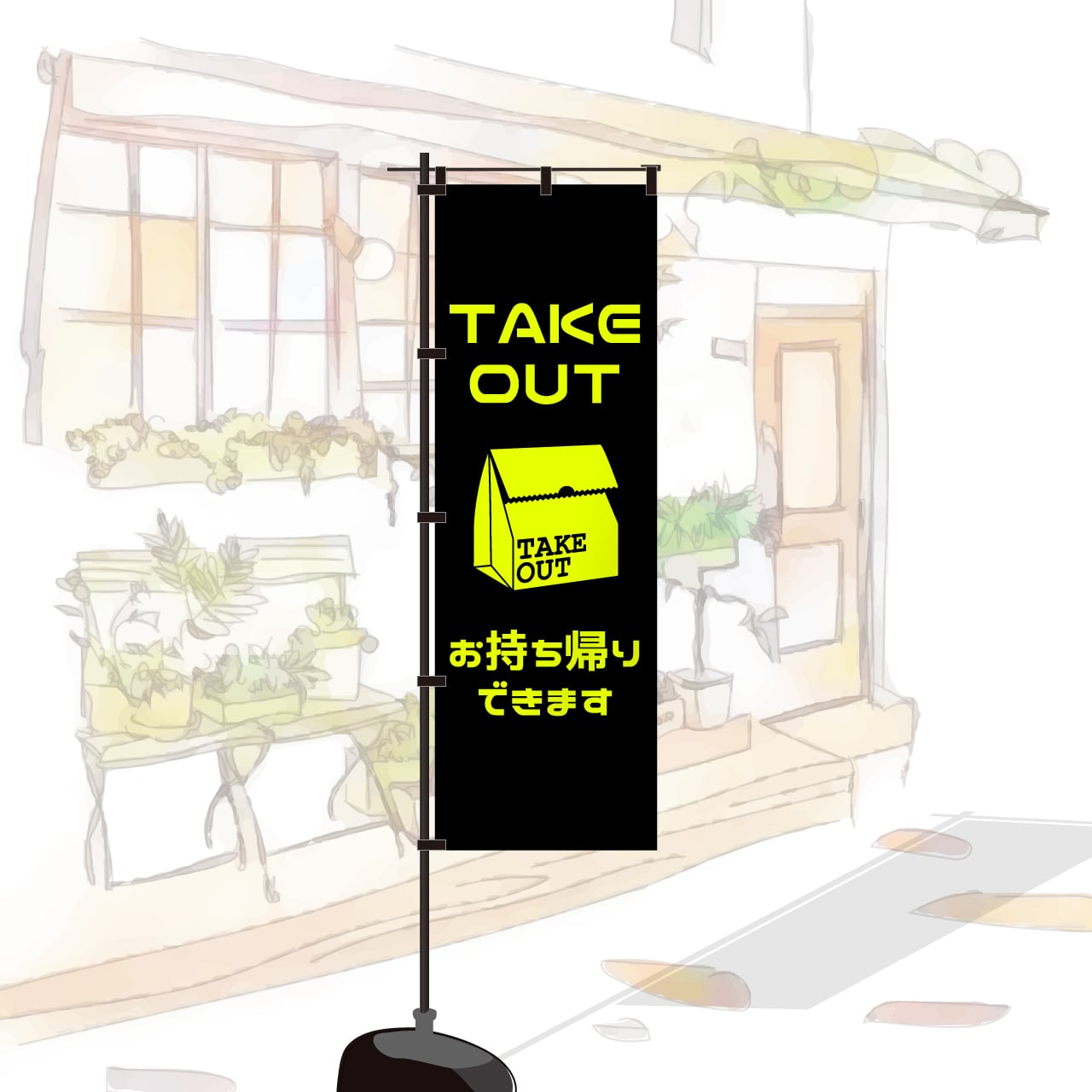【蛍光色:イエロー】テイクアウト TAKEOUT お持ち帰り 飲食 移動販売 キッチンカー フードトラック 営業中 のぼり旗 おしゃれ のぼり オリジナルデザイン 1枚から購入可能