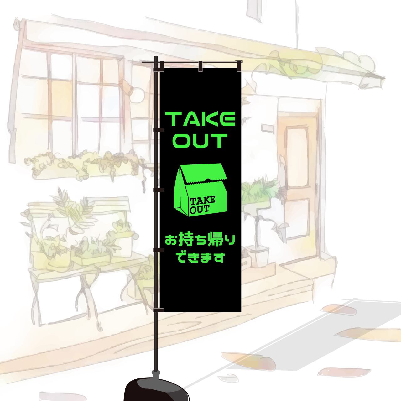 【蛍光色:グリーン】テイクアウト TAKEOUT お持ち帰り 飲食 移動販売 キッチンカー フードトラック 営業中 のぼり旗 おしゃれ のぼり オリジナルデザイン 1枚から購入可能