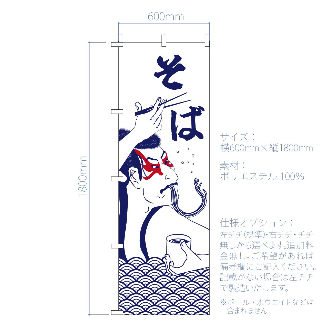 そば 蕎麦 うどん 浮世絵 写楽 のぼり旗 おしゃれ のぼり オリジナルデザイン 1枚から購入可能