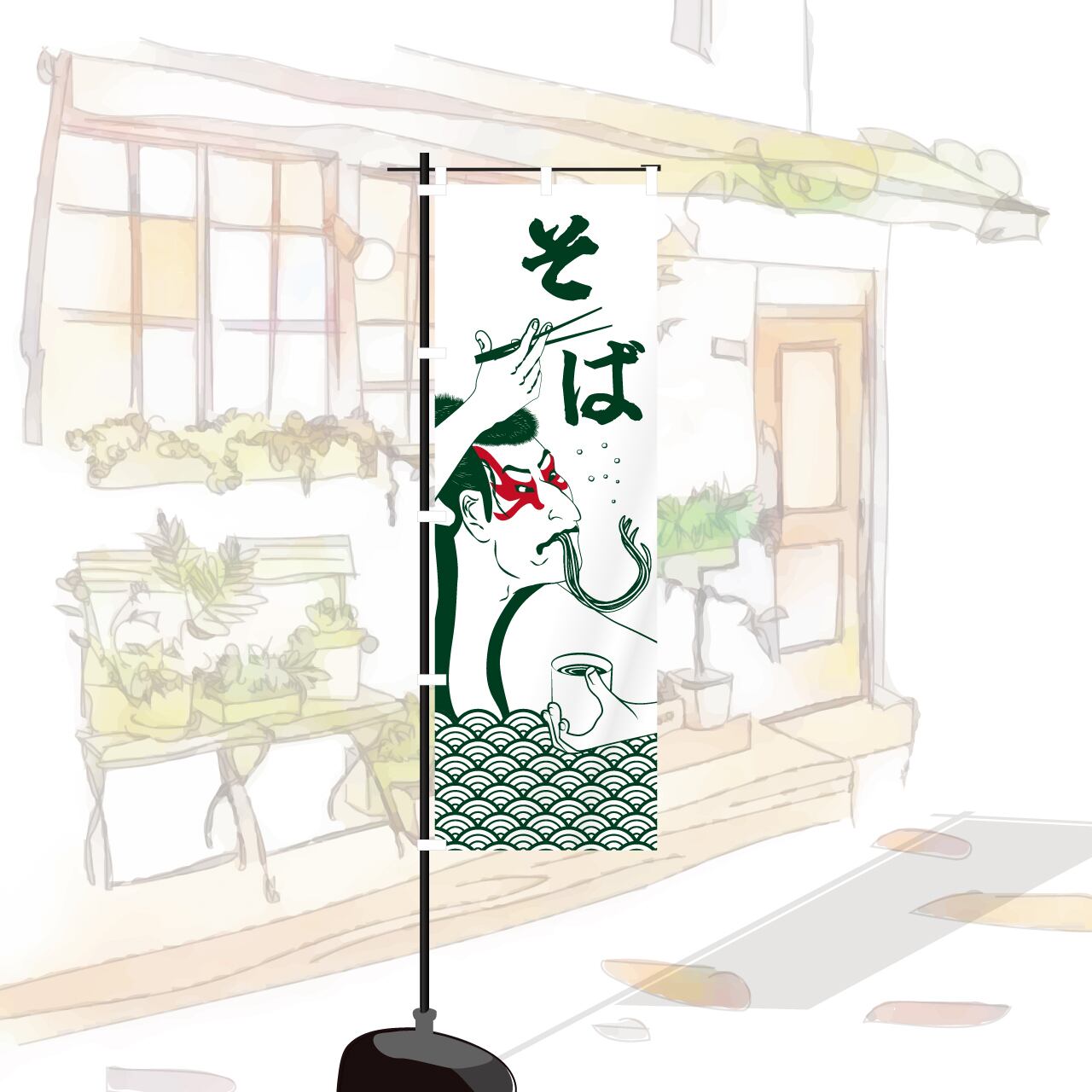 そば 蕎麦 うどん 浮世絵 写楽 のぼり旗 おしゃれ のぼり オリジナルデザイン 1枚から購入可能