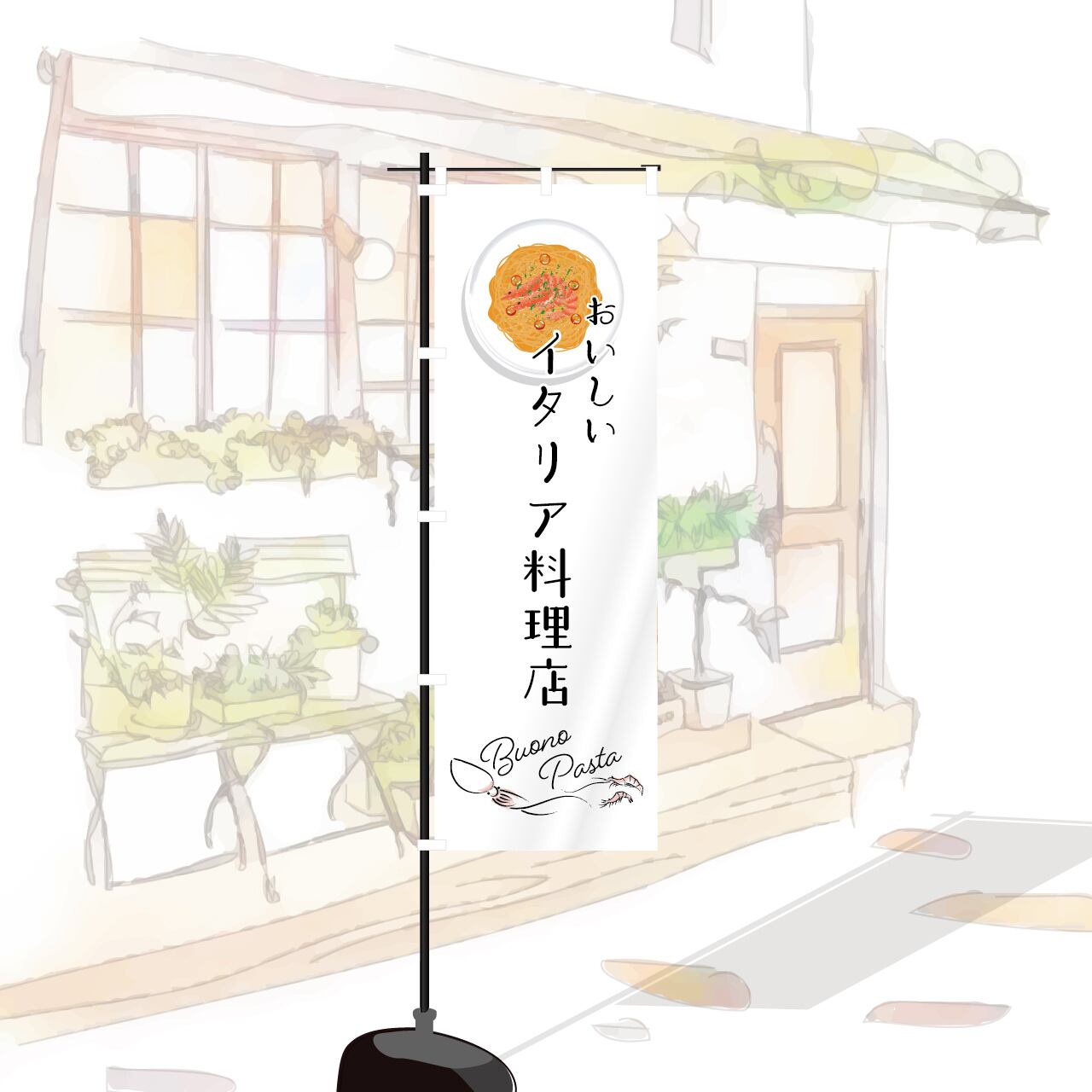 パスタ スパゲティ イタリア料理 イタリアン レストラン エビ 海老 飲食 洋食 イタ飯 のぼり旗 おしゃれ のぼり オリジナルデザイン 1枚から購入可能