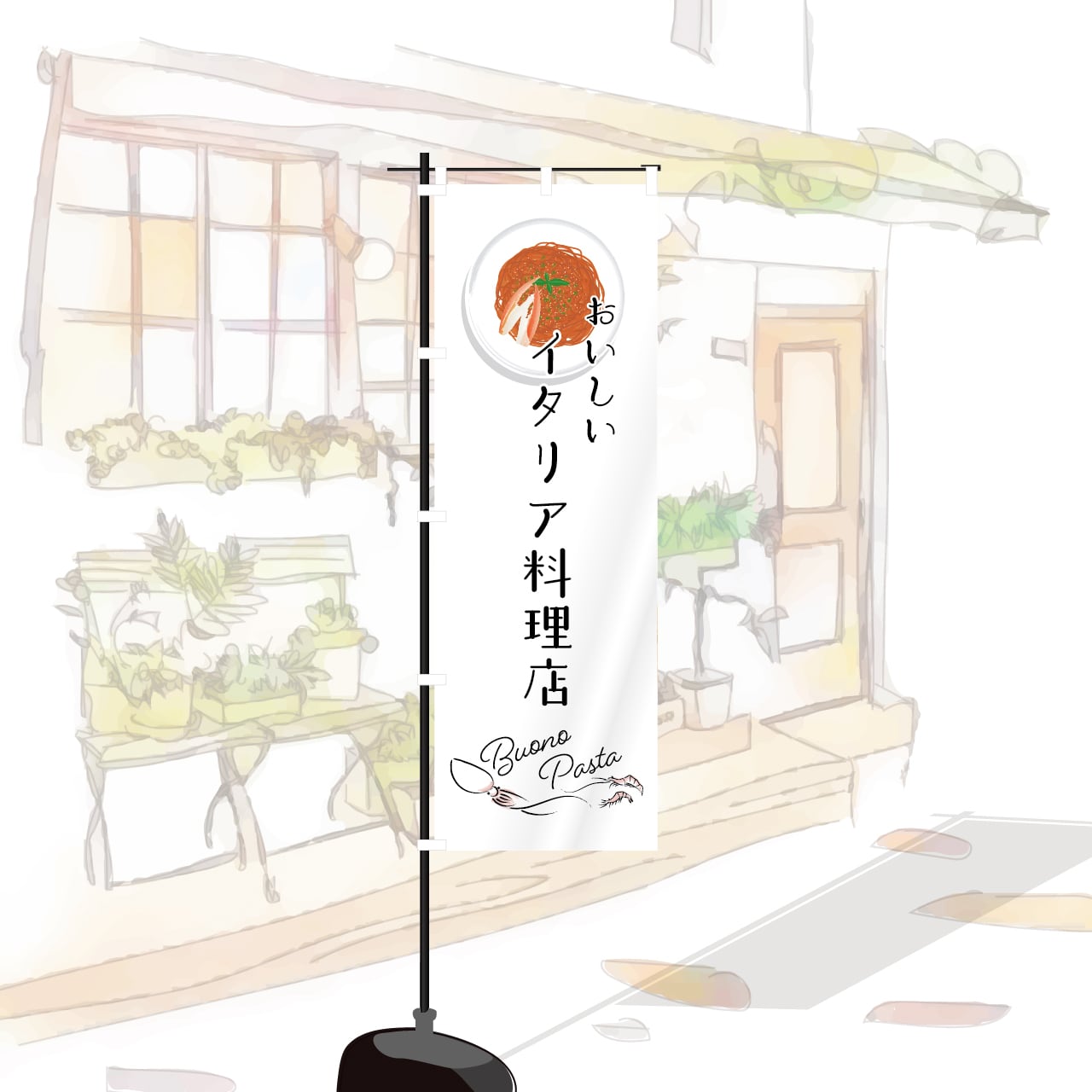 パスタ スパゲティ イタリア料理 イタリアン レストラン 渡り蟹のパスタ 飲食 洋食 イタ飯 のぼり旗 おしゃれ のぼり オリジナルデザイン 1枚から購入可能