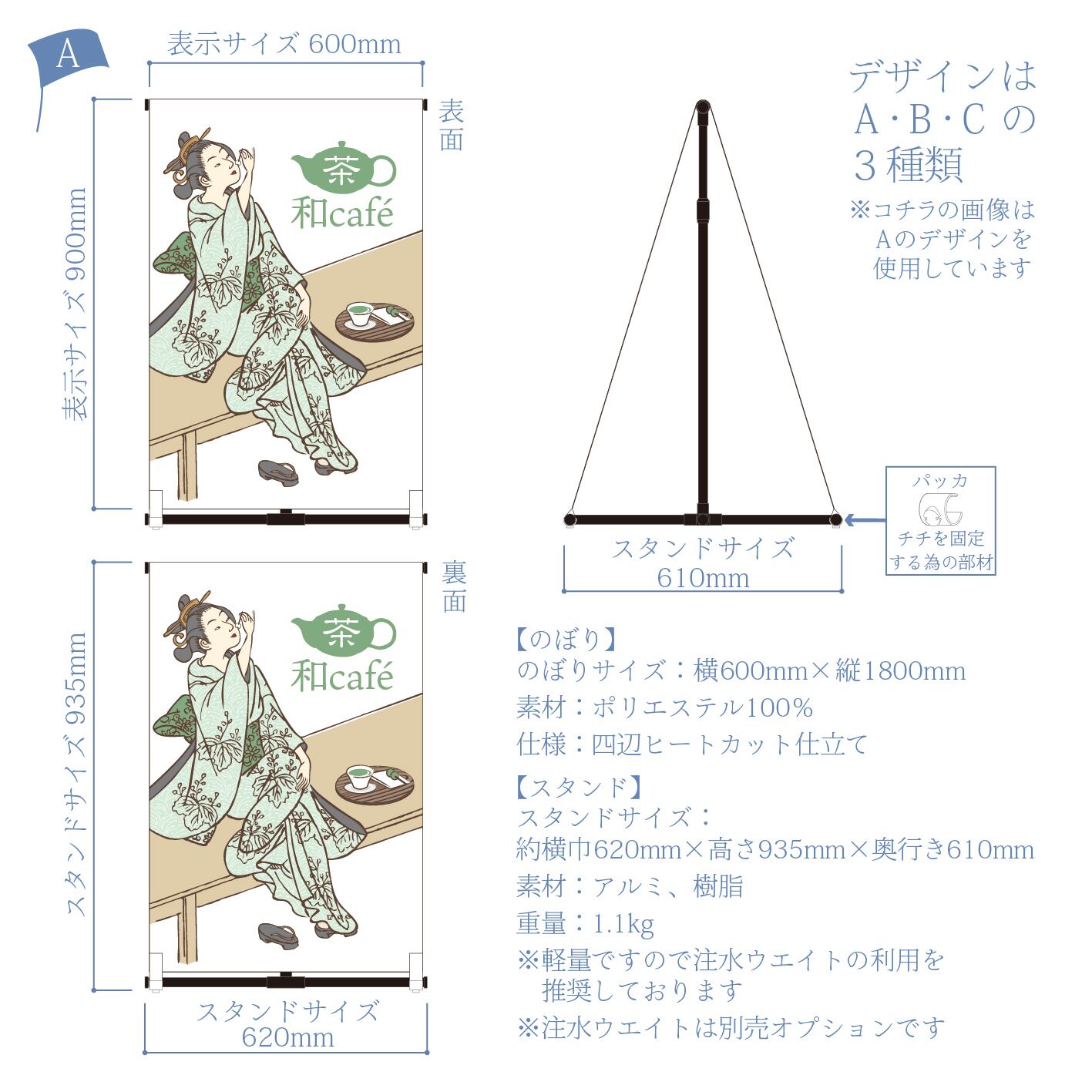 のぼりのデザインをA・B・Cの中からお選びください。