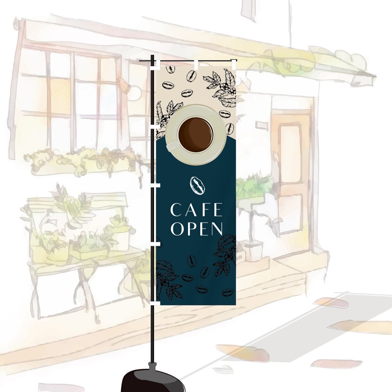カフェ オープン open コーヒー cafe 喫茶店 のぼり旗 おしゃれ のぼり オリジナルデザイン 1枚から購入可能