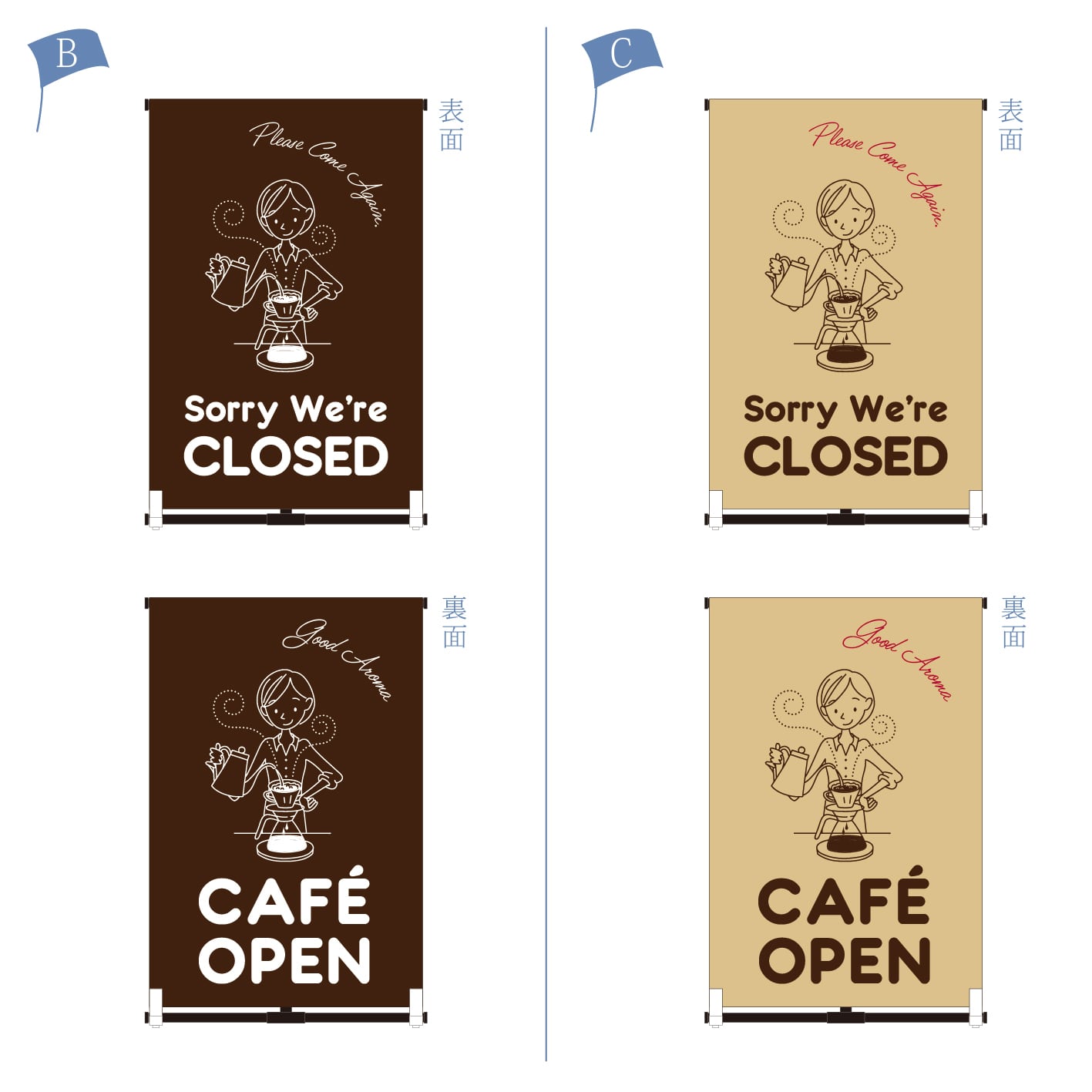 表面CLOSED 裏面OPEN カフェ コーヒー 珈琲 看板 A型スタンド看【送料無料】(沖縄を除く)
