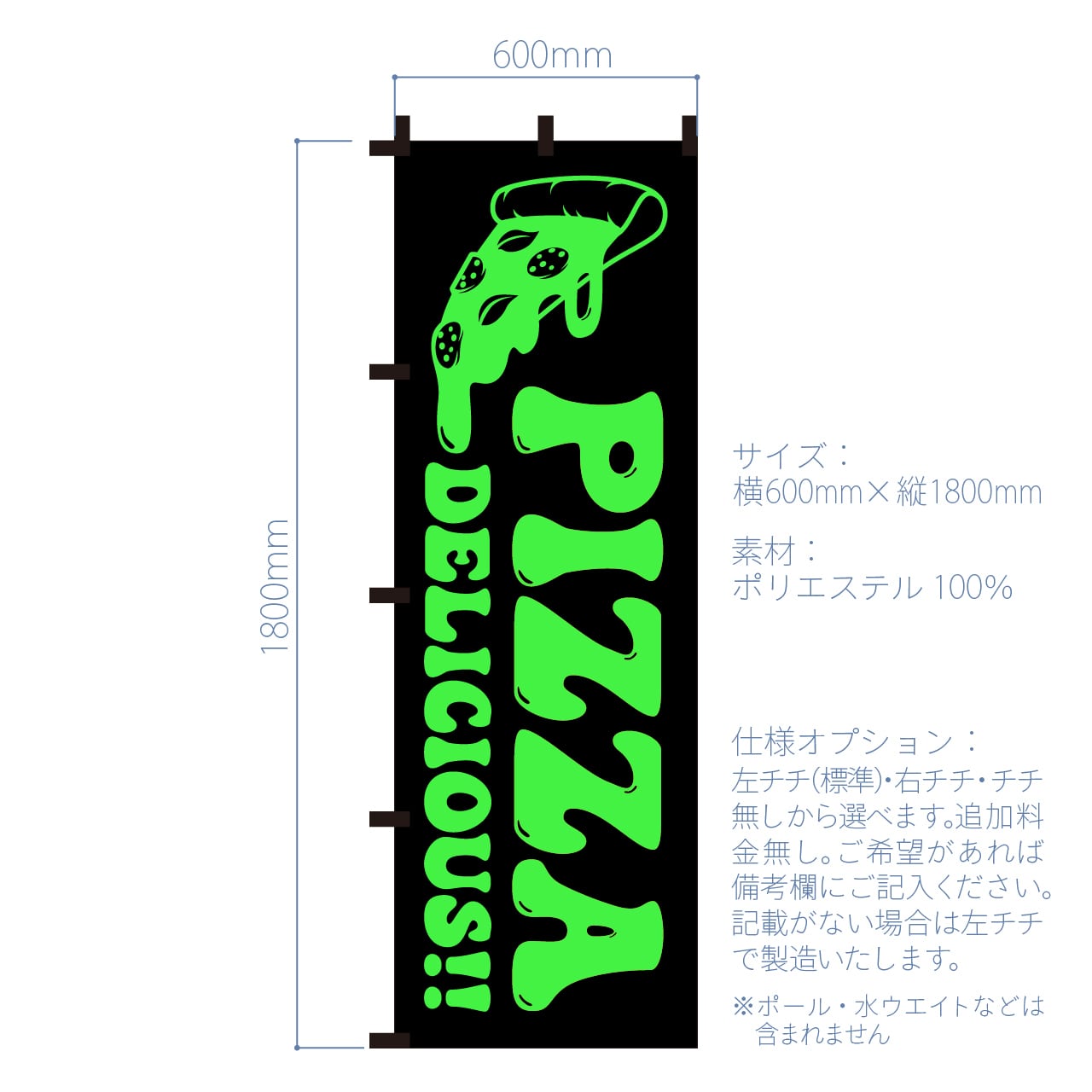 【蛍光色:グリーン】ピザ PIZZA のぼり旗 おしゃれ のぼり オリジナルデザイン 1枚から購入可能