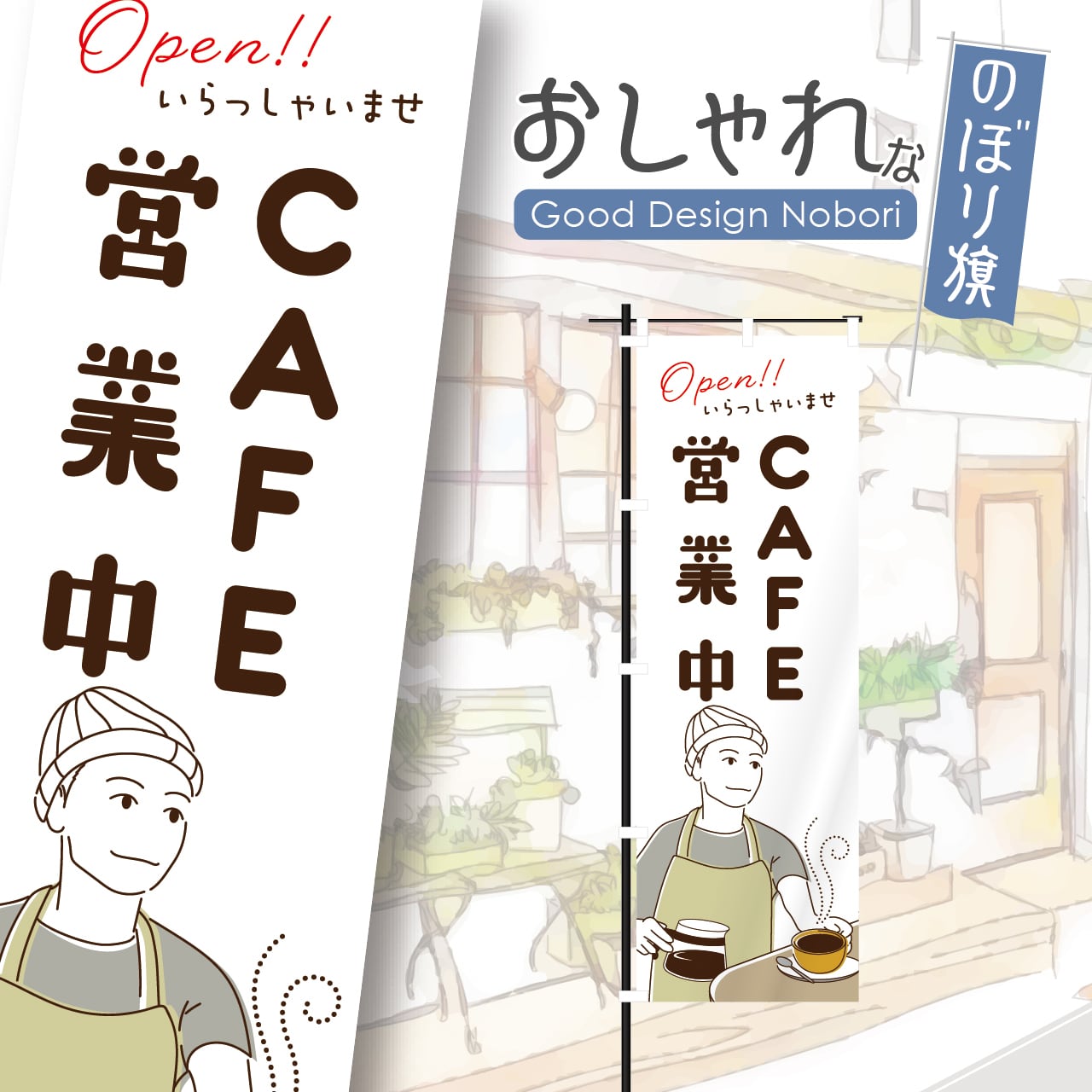 カフェ オープン open コーヒー cafe 喫茶店 のぼり旗 おしゃれ のぼり オリジナルデザイン 1枚から購入可能