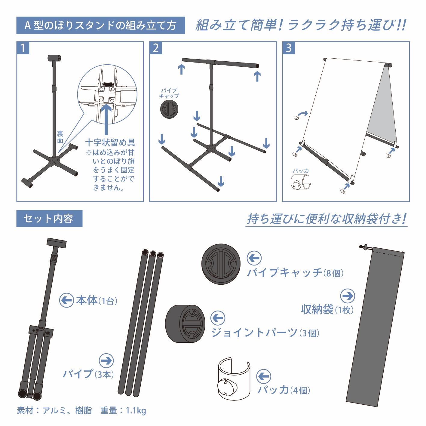 A型のぼりスタンド セット販売 のぼり のぼり旗 軽量 おしゃれ 屋外使用可