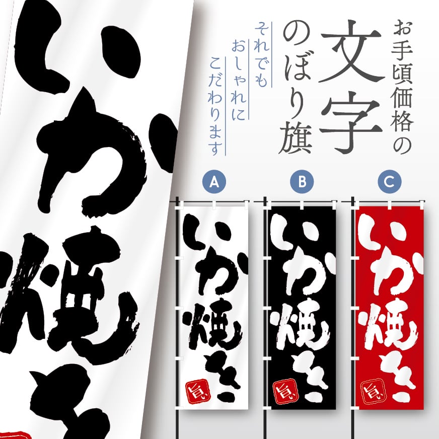 いか焼き イカ焼き イカ いか 文字のぼり のぼり旗 おしゃれ のぼり オリジナルデザイン 1枚から購入可能